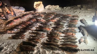 Горе‑рибалки ловили з криги за допомогою п’яти сіток і здобули 420 кг риби. Серед вилову — 103 сазани, 85 лящів, 2 карасі, 1 білий амур та 1 товстолоб.