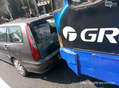 троллейбус маршрута №14 врезался в легковое авто Mitsubishi Lancer.